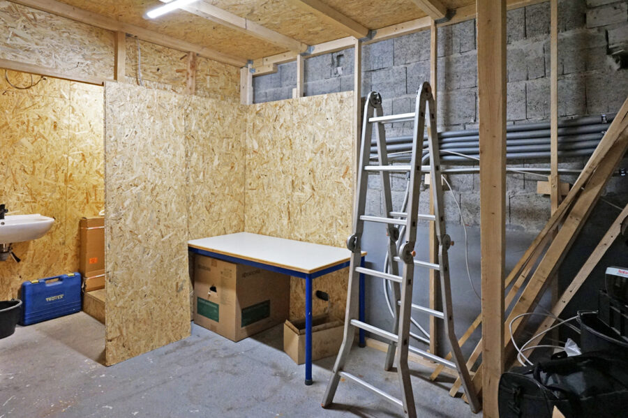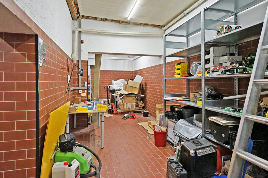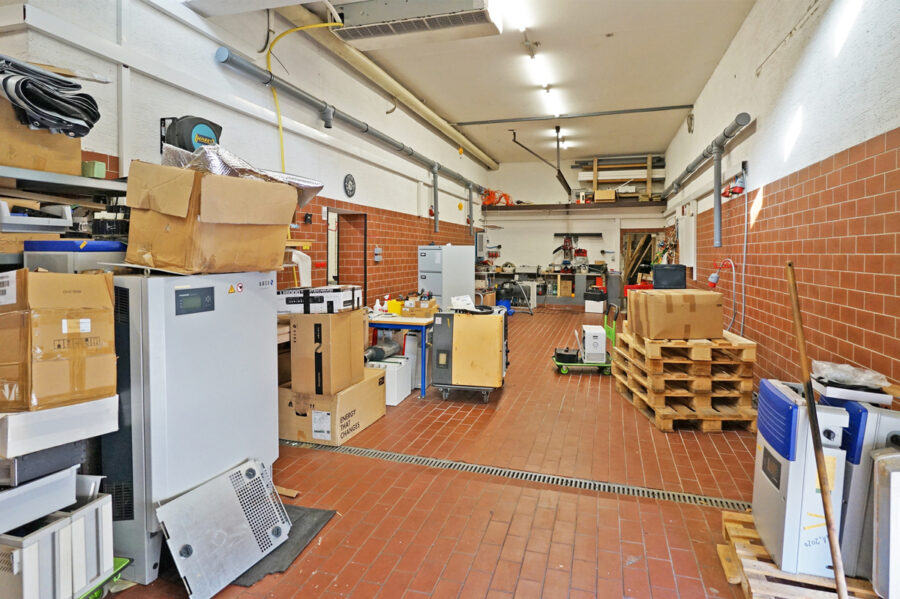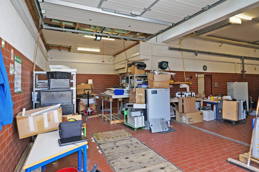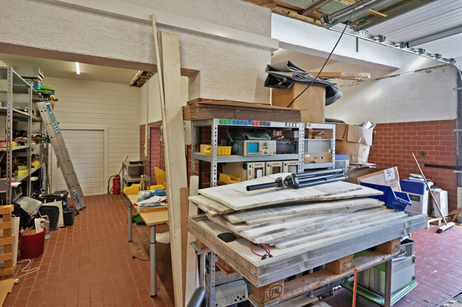 • Die Raumhöhe von 3 m erlaubt den Einbau einer Hebebühne.