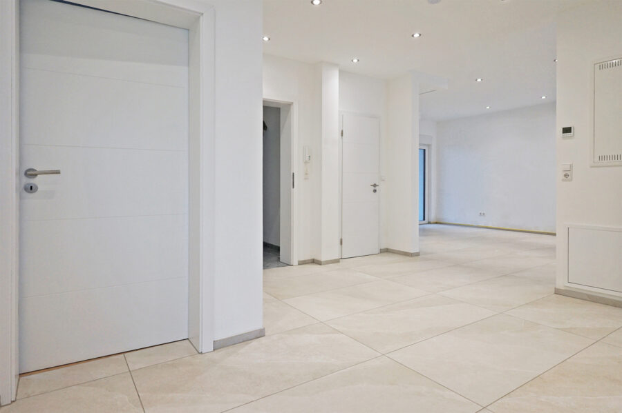 • Hochwertiger heller Fliesenboden im Wohn/- Essbereich, Flur und Abstellraum.