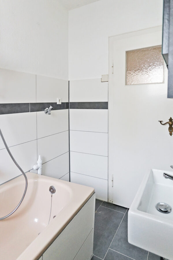 • Das Tageslichtbad ist hell gefliest.