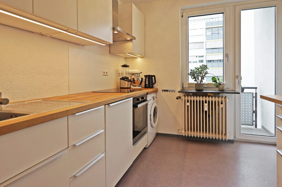 • Küche (ca. 9 m²) mit Abstellraum und Zugang zum kleinen Balkon