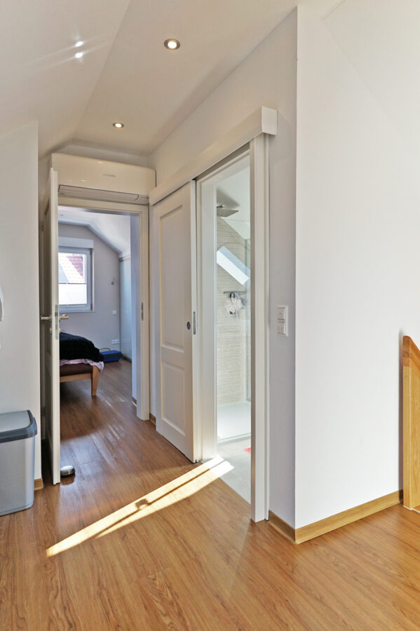 • Das Obergeschoss verfügt über ein bereits in der Decke verbautes Soundsystem mit hochwertigen Boxen sowie eine Fußbodenheizung.