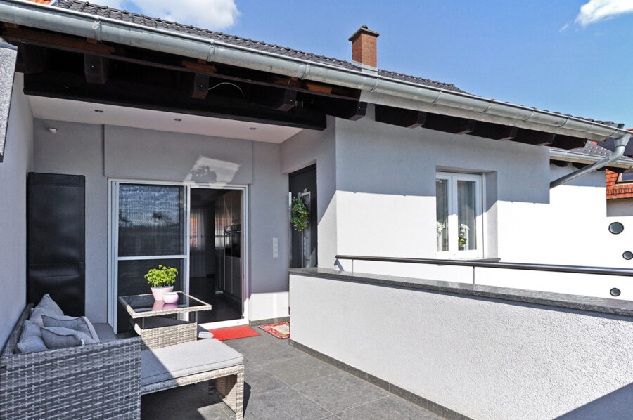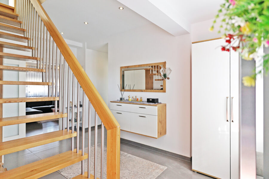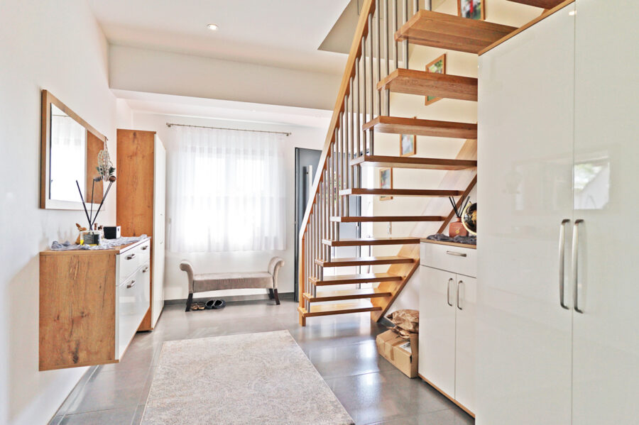 • angenehme Diele (ca. 14 m²) mit Zugang zur Terrasse (ca. 14 m²), sowie zum Dachgeschoss